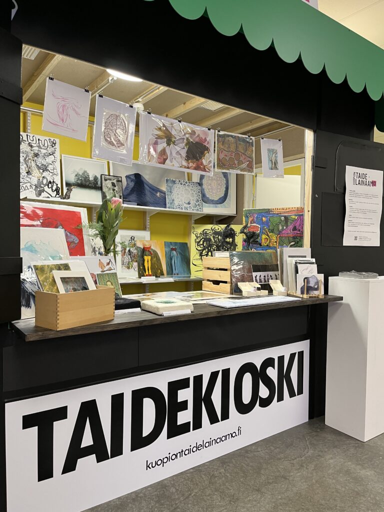Taidekioski on Kuopion taidelainaamon pop-up taidekioski ja näyttelytila, joka on avoinna Olvi Areenalla 10.-13.6.2026.